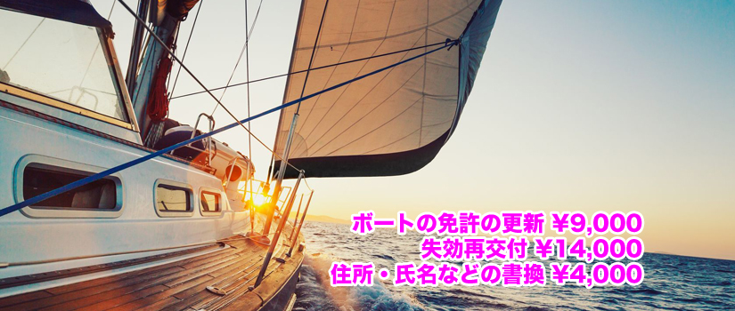 当事務所では、新規操縦免許(ボート免許)の取得から有効期間の更新、失効した場合による再交付、住所や氏名の変更による書換など、ワンストップでサポートさせていただきます。